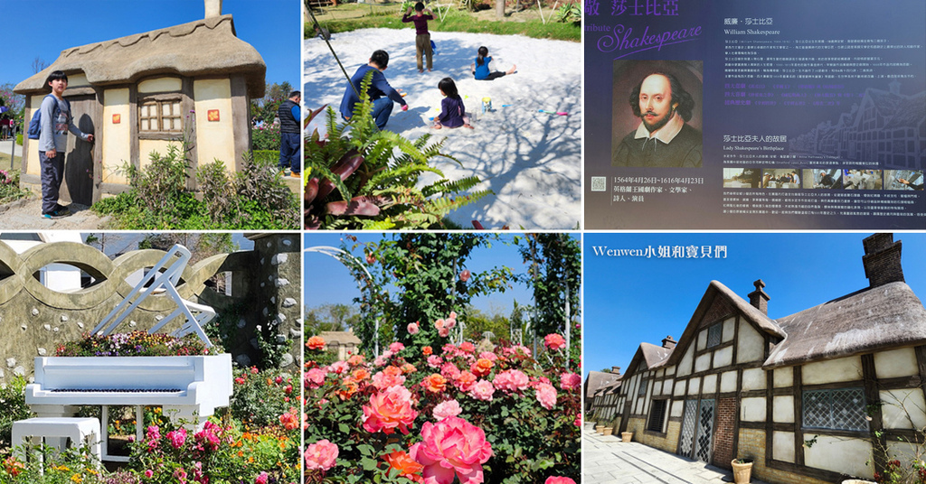 新景點❤免門票一萬五千坪玫瑰園~莎士比亞夫人故居1:1復刻、迷你童話建築,還有雪白沙坑~ 附美食餐廳菜單價位~