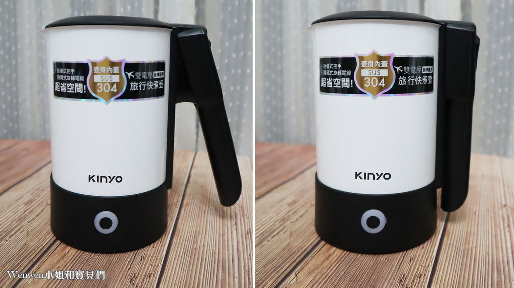 KINYO雙電壓旅行快煮壼,除了摺疊好收,重量輕巧,還有一個Wenwen很喜歡的重點,就是圓筒型的設計及可拆式壺蓋。