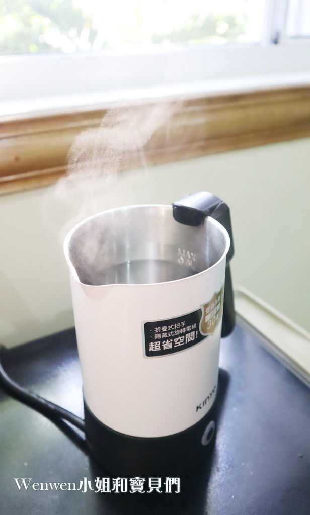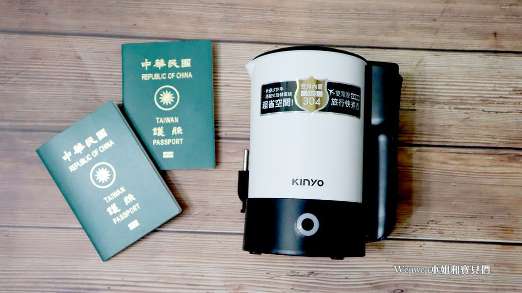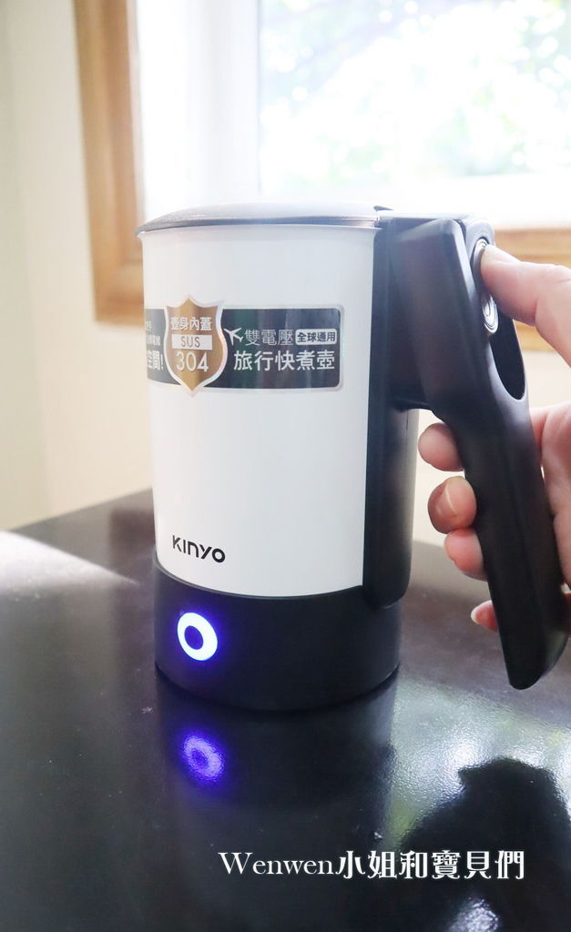 Wenwen家的親子旅遊行李清單,必備旅遊小物之一就是 KINYO雙電壓旅行快煮壼。
